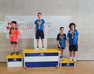 | Double U17-U19 | Desroches José + Sejmenovic Ibrahim [ZZ-Lancy + Bernex] | McHugo Sam + Marchi Luca [UGS-Chênois + ZZ-Lancy | Generowicz Livia + Marchi Livia [Châtelaine + ZZ-Lancy] Yeo Annabelle + Yeo Isabelle [Silver Star] | |