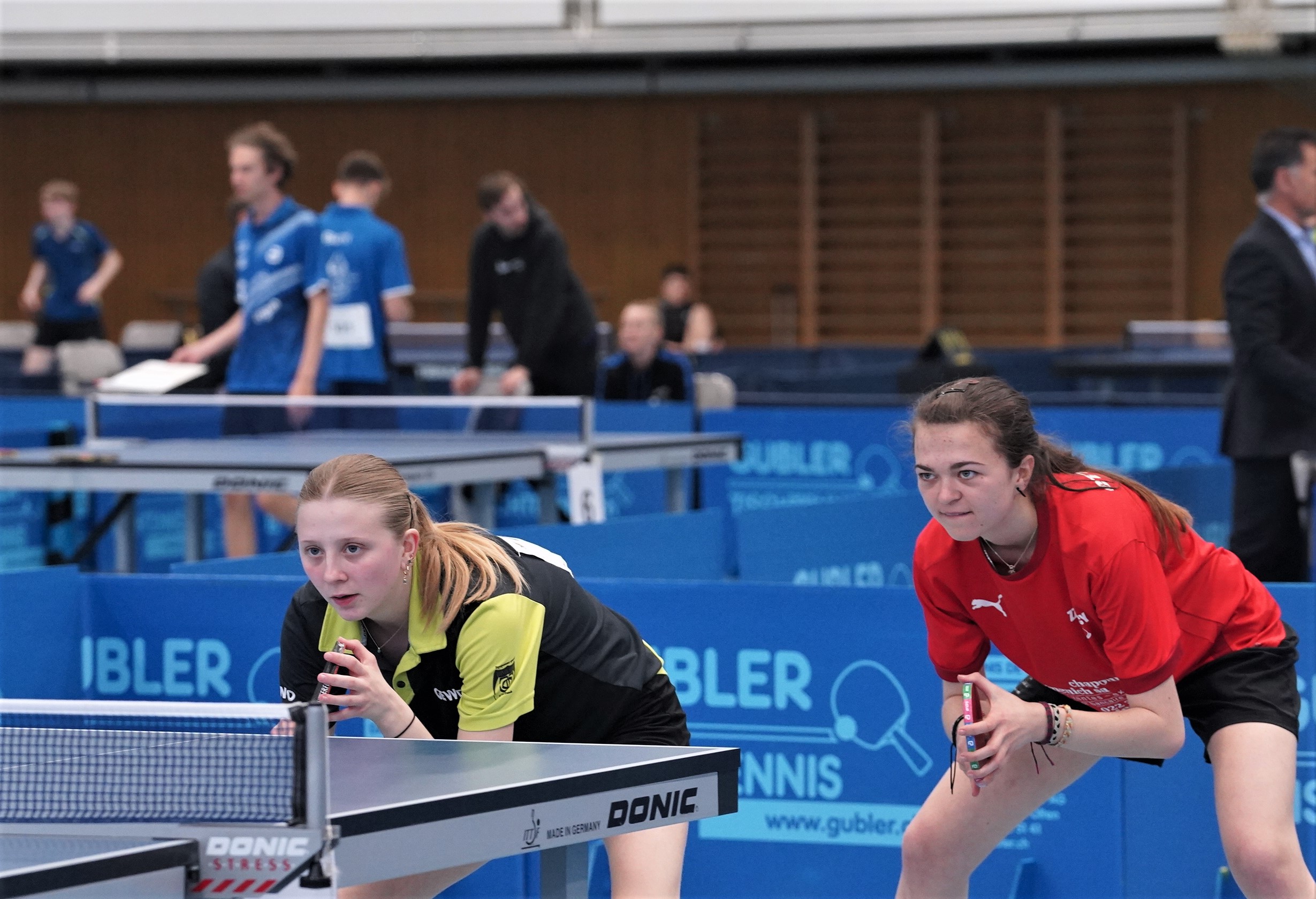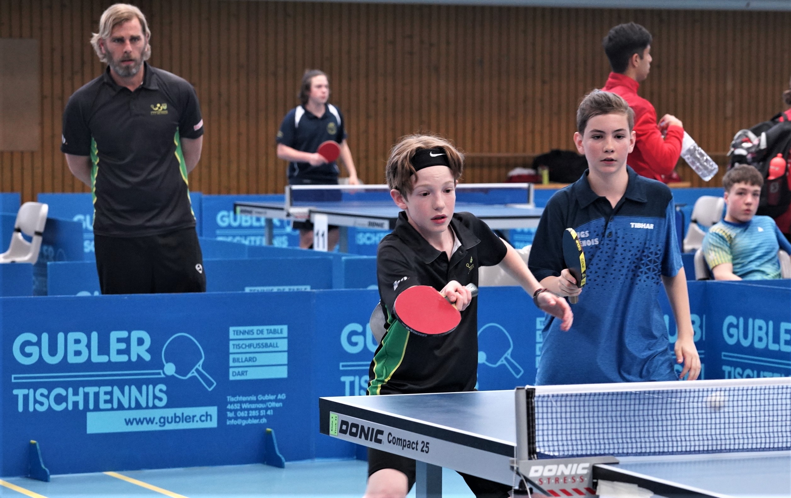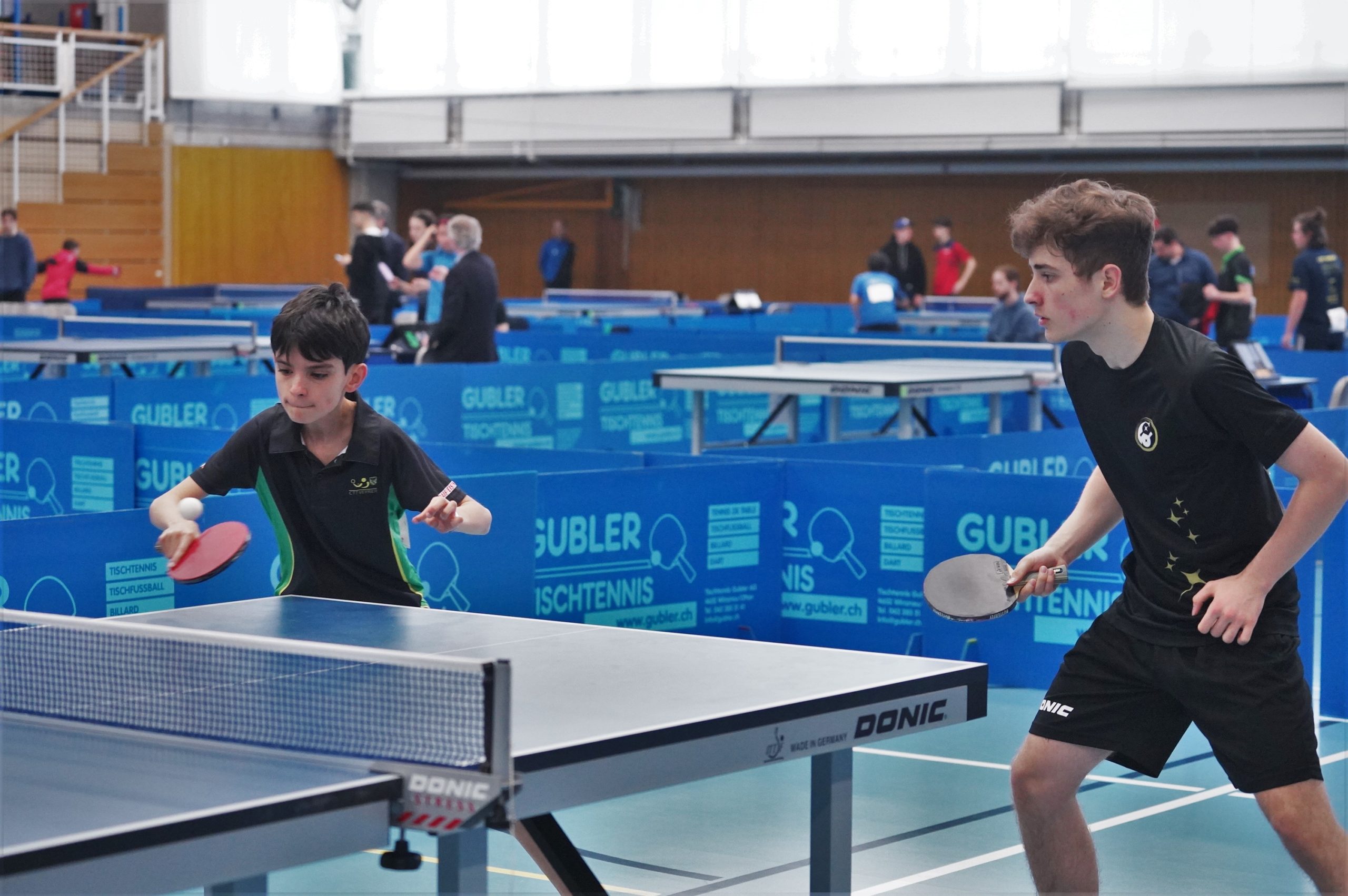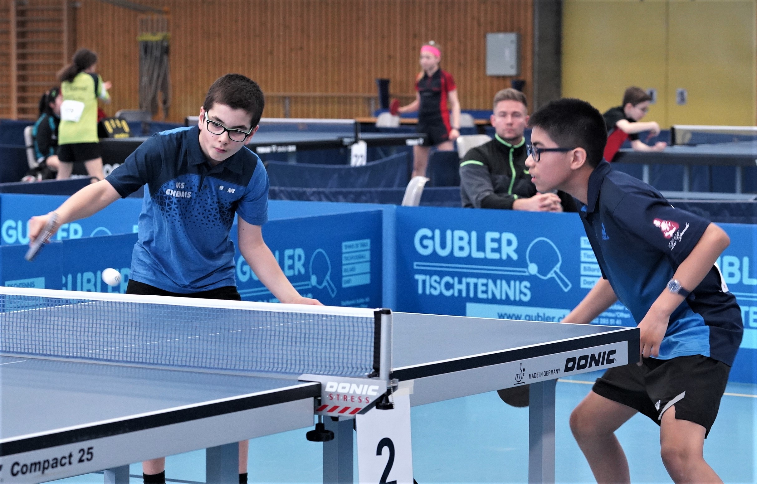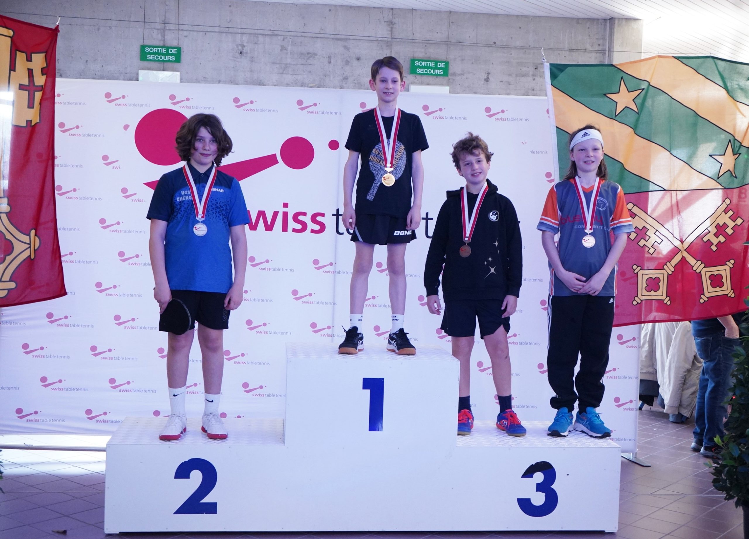 Trois des quatre médailles d'or proviennent des catégories de double : en Doubles garçons U15 avec Samuel Durrlemann (UGS-Chênois) qui l'emporte avec Michel Kloss (Rapid Lucerne), en Doubles mixte U19 avec le duo du ZZ-Lancy Fanny Doutaz/Abishek Vepa et finalement Ester Hubnerova (ZZ-Lancy) qui prend l'or en Doubles filles avec Nina Tulii (La Chaux-de-Fonds). L'unique titre en simple du week-end a été amené par Fanny Doutaz en Simple filles U17.