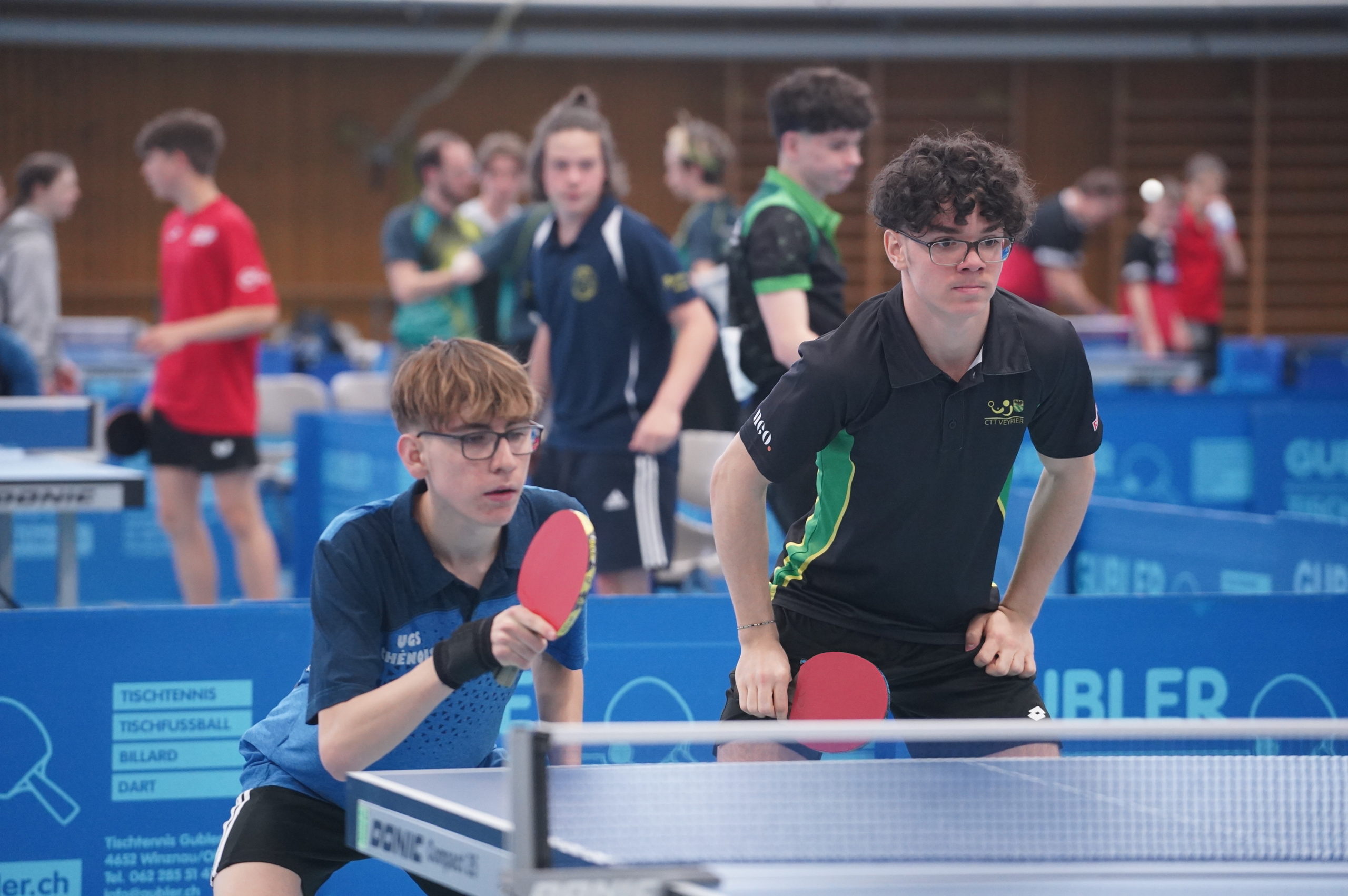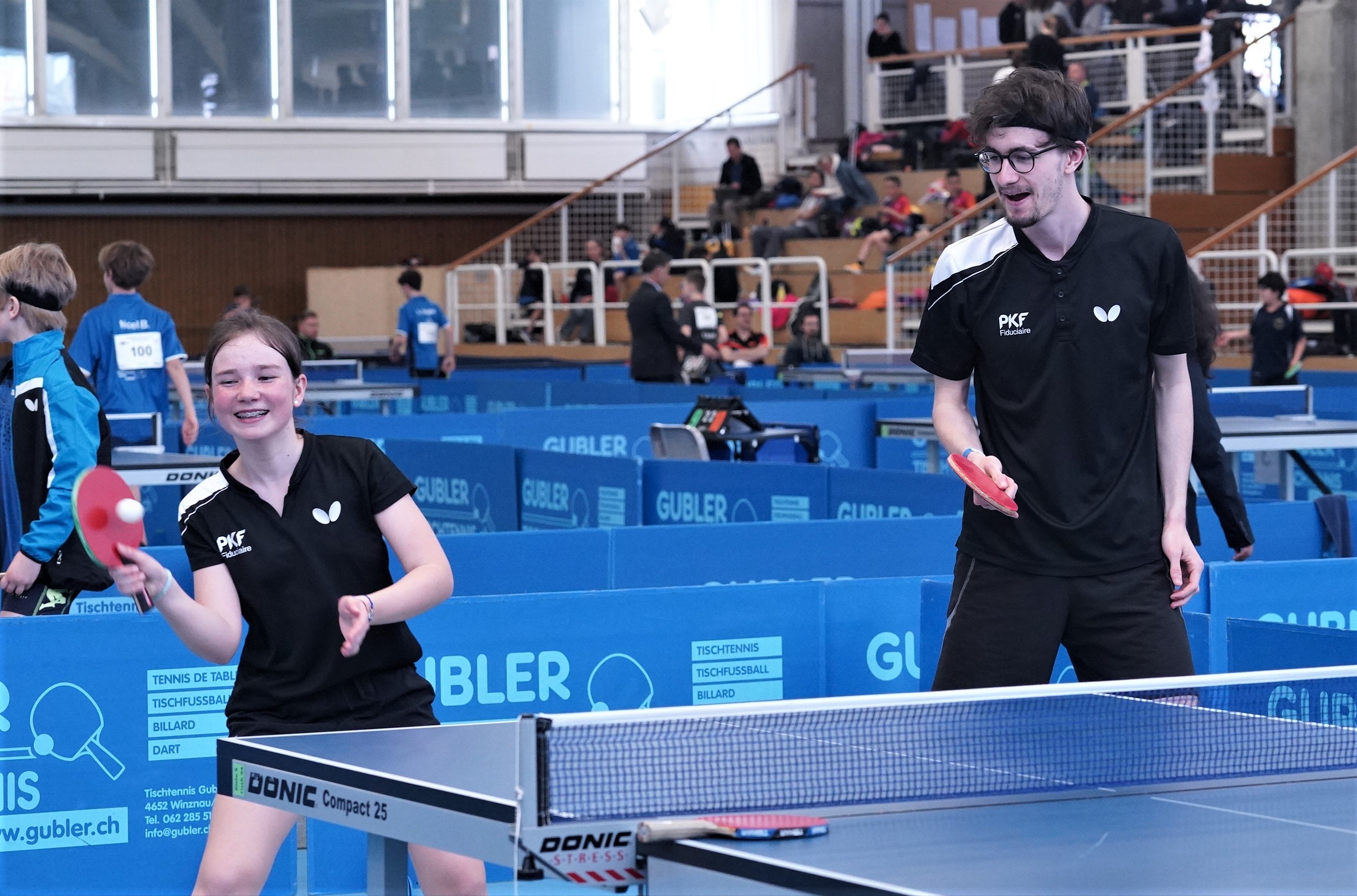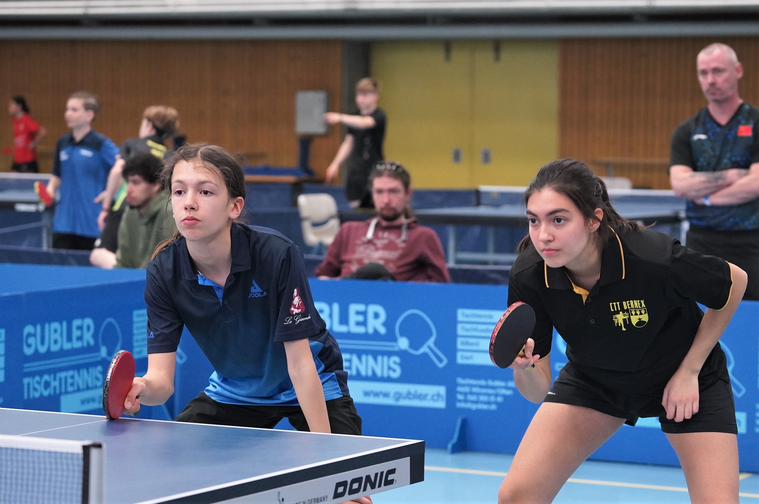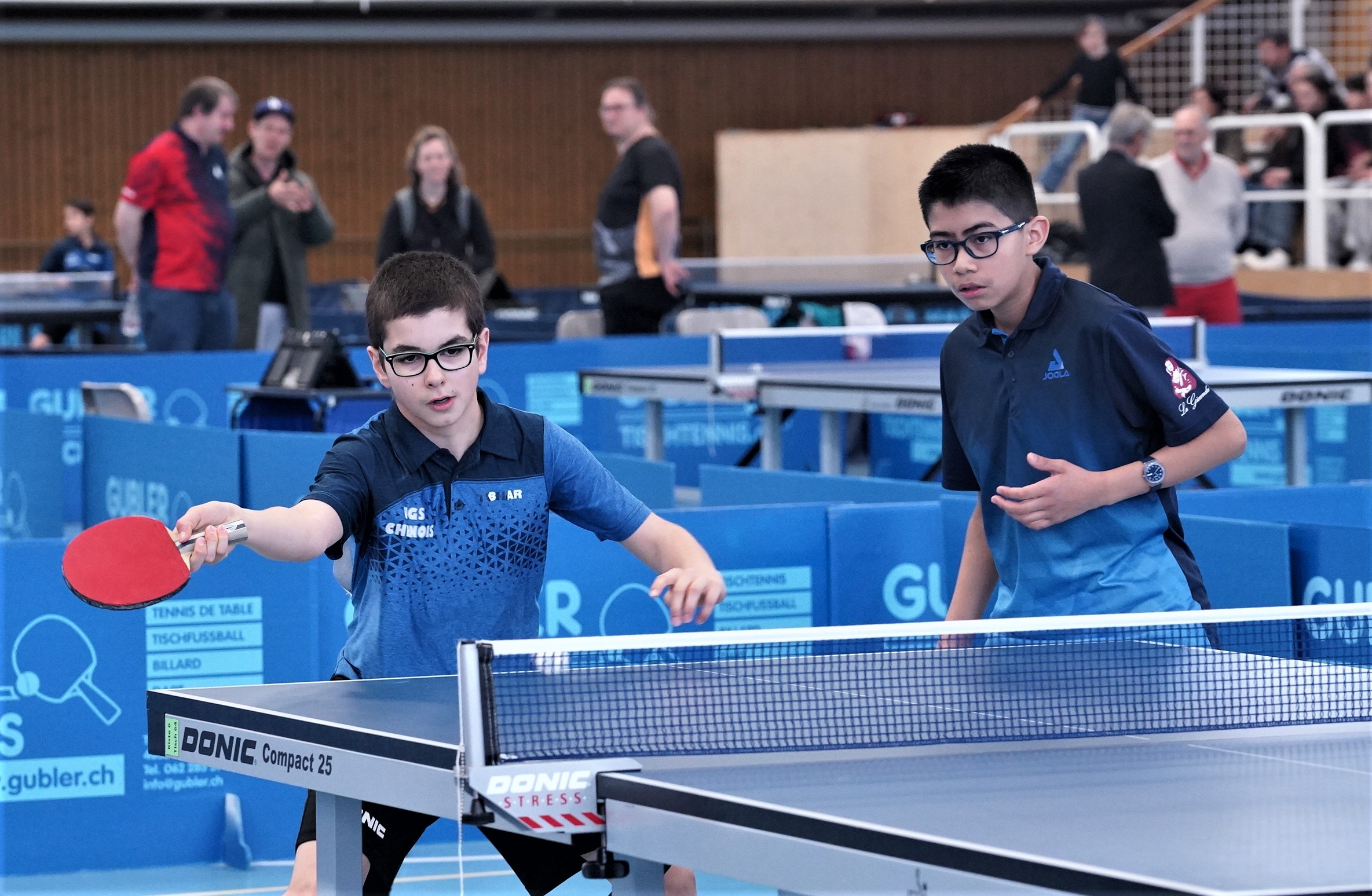 Trois des quatre médailles d'or proviennent des catégories de double : en Doubles garçons U15 avec Samuel Durrlemann (UGS-Chênois) qui l'emporte avec Michel Kloss (Rapid Lucerne), en Doubles mixte U19 avec le duo du ZZ-Lancy Fanny Doutaz/Abishek Vepa et finalement Ester Hubnerova (ZZ-Lancy) qui prend l'or en Doubles filles avec Nina Tulii (La Chaux-de-Fonds). L'unique titre en simple du week-end a été amené par Fanny Doutaz en Simple filles U17.