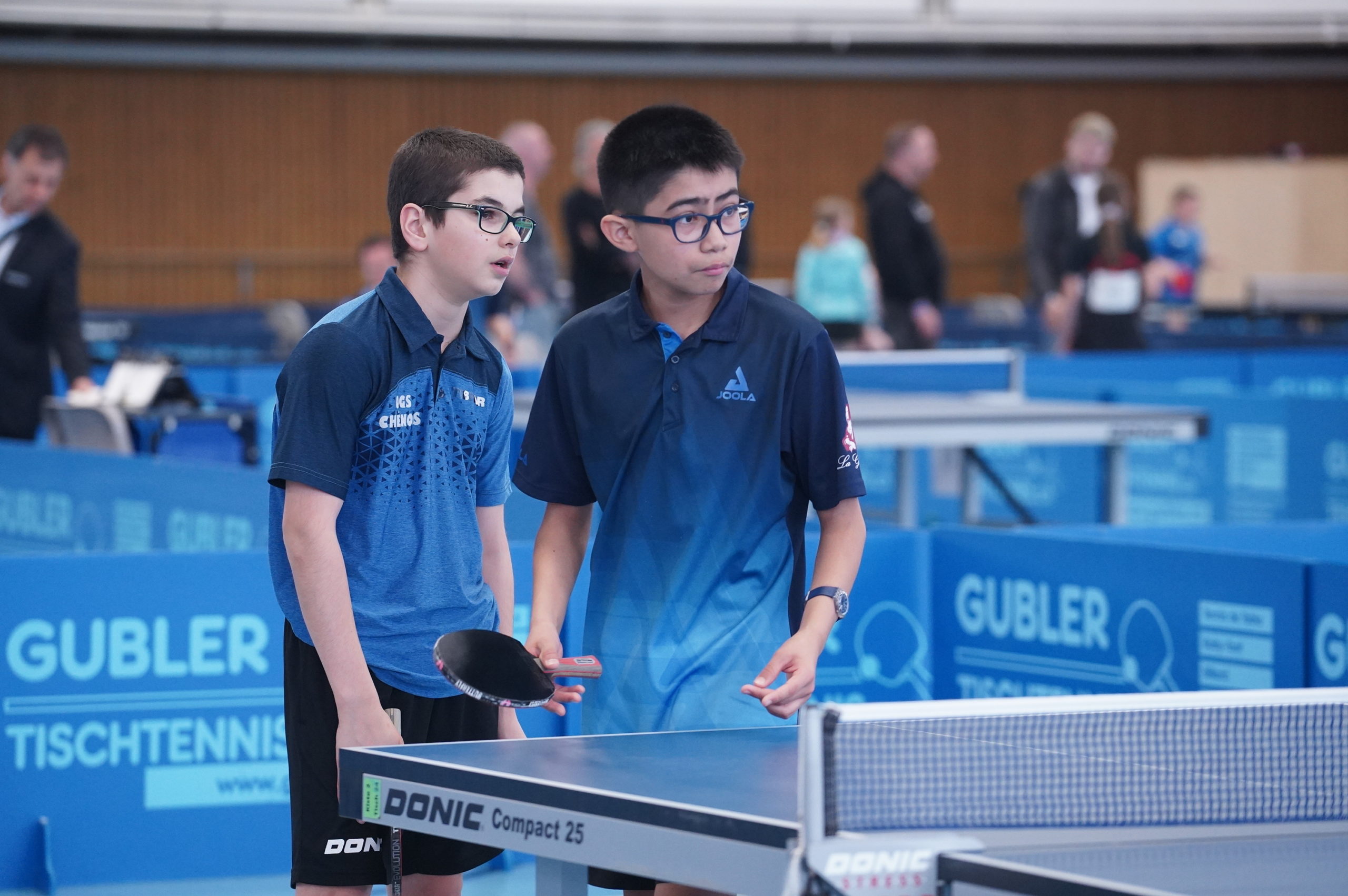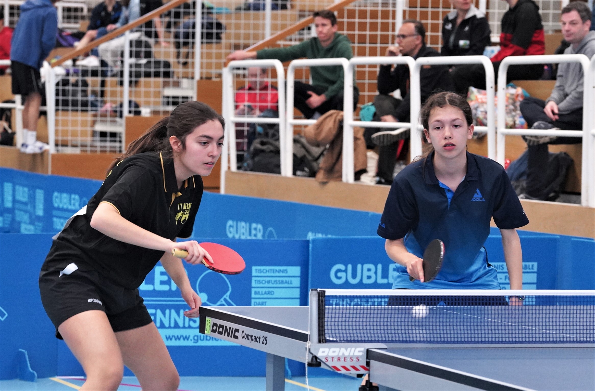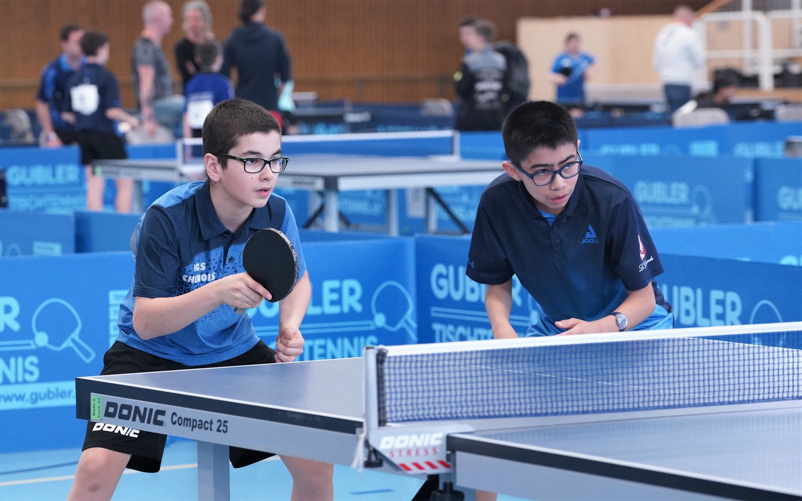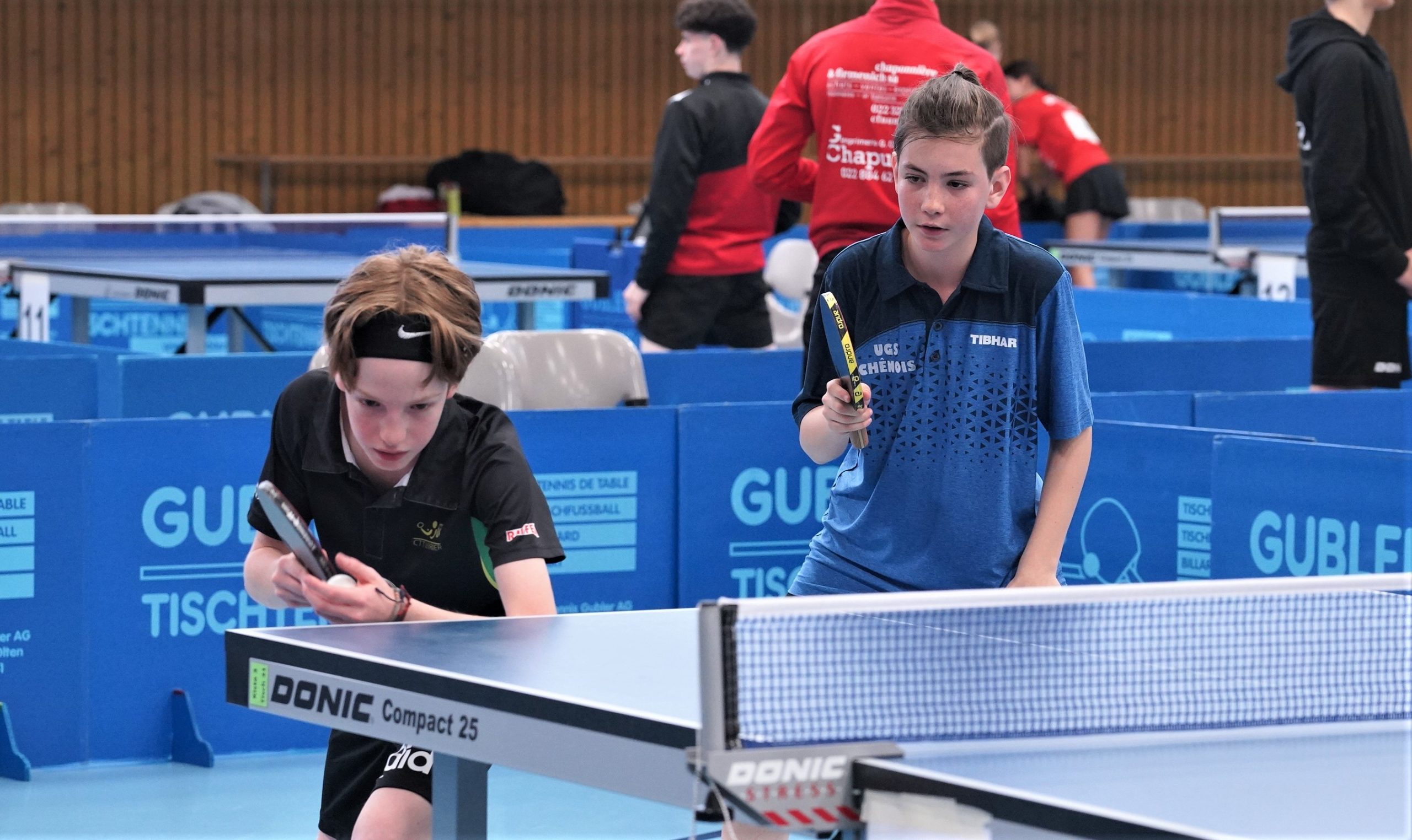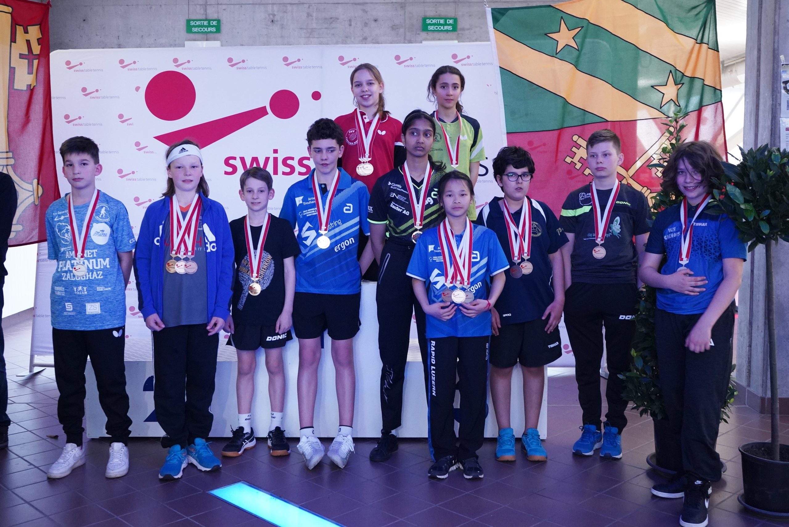 Trois des quatre médailles d'or proviennent des catégories de double : en Doubles garçons U15 avec Samuel Durrlemann (UGS-Chênois) qui l'emporte avec Michel Kloss (Rapid Lucerne), en Doubles mixte U19 avec le duo du ZZ-Lancy Fanny Doutaz/Abishek Vepa et finalement Ester Hubnerova (ZZ-Lancy) qui prend l'or en Doubles filles avec Nina Tulii (La Chaux-de-Fonds). L'unique titre en simple du week-end a été amené par Fanny Doutaz en Simple filles U17.