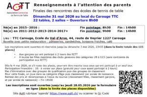 Finales des Rencontres des Ecoles de Tennis de Table - 31 mai 2026
