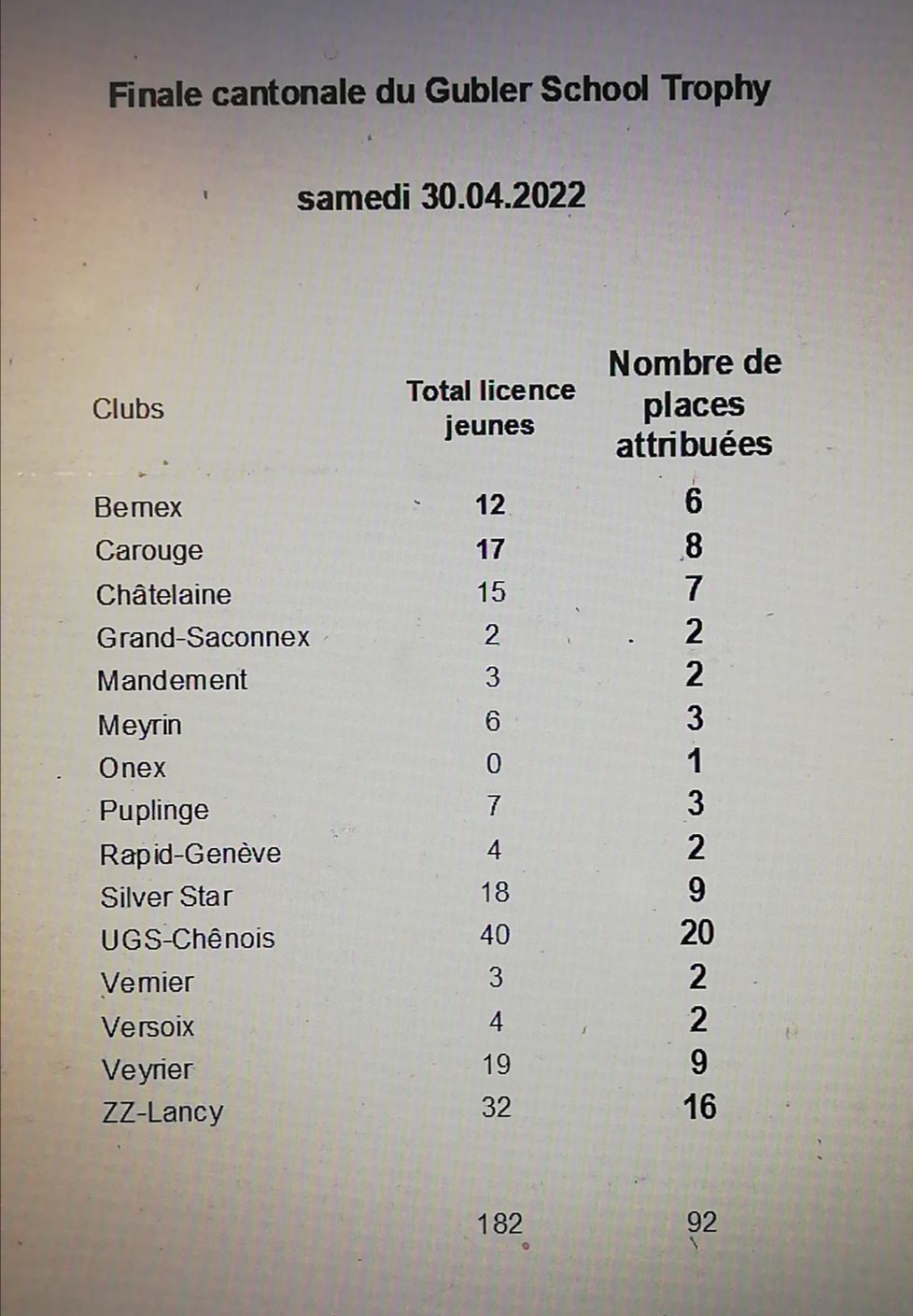 Remerciements au club organisateur le CTT ZZ-Lancy et à tous les bénévoles, entraîneurs, dirigeants, parents qui ont contribué à la réussite de cette journée sportive.